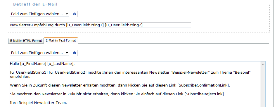 Beispiel für das Newsletter-Empfehlungs-Formular