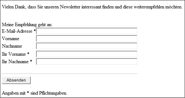 und Vornamen des Newsletter-Empfehlers, ebenfalls als Pflichtfeld