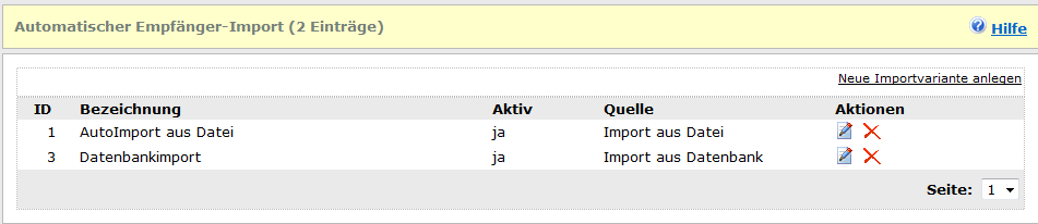 | Neue Importvariante anlegen | Ermöglicht es eine neue Import-Variante anzulegen.