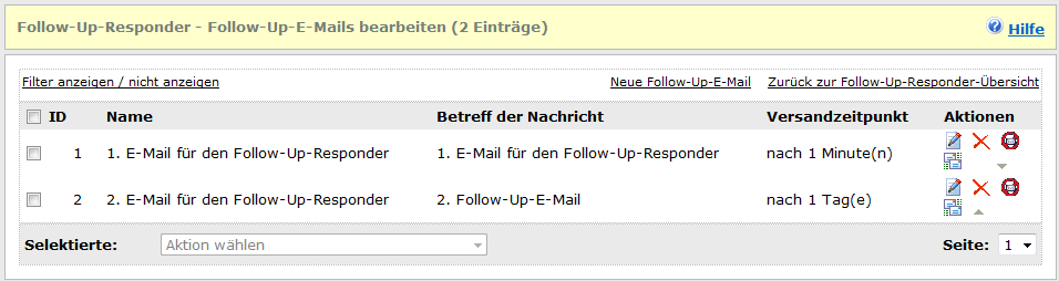 verschieben. Sie können so die Reihenfolge des Versands der Folge-E-Mails