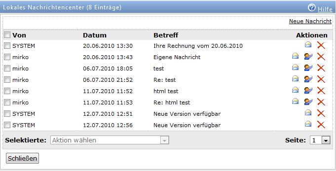 | Auswahlbox | Sie können mehrere Nachrichten mit Hilfe der Auswahlboxen