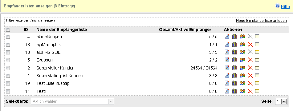 Zeigt die gespeicherten Newsletter-/Empfängerlisten-Empfänger.