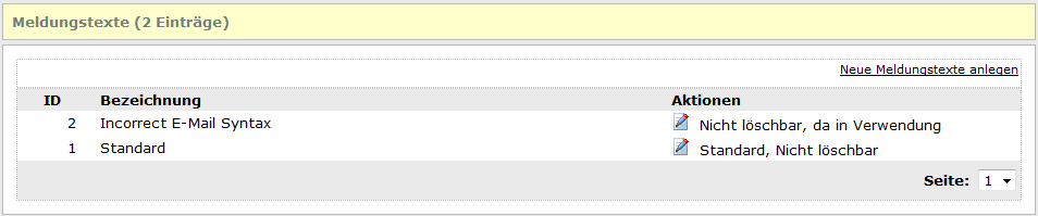 | Neue Meldungstexte anlegen | Ermöglicht es ein neues