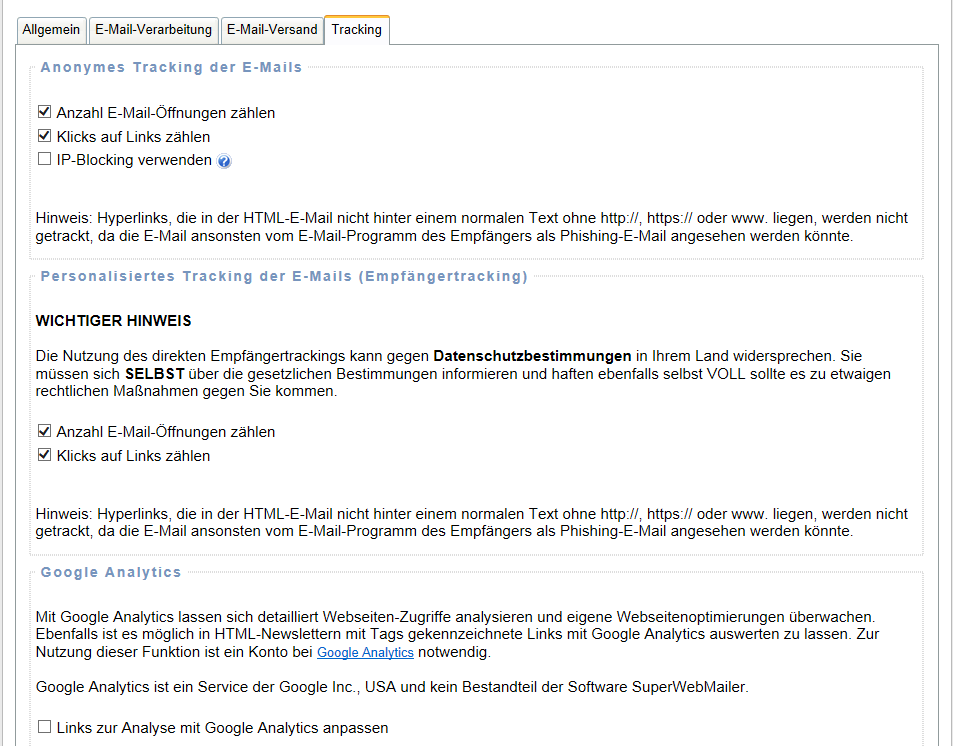 Die Nutzung des direkten Empfängertrackings kann gegen Datenschutzbestimmungen