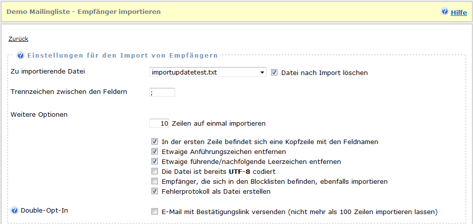 importierten Empfänger eine E-Mail mit Bestätigungslink zur entgültigen