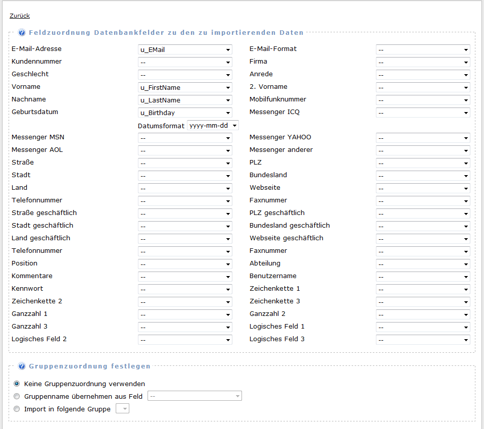- Beim Import in das Feld "E-Mail-Format" werden die Angaben wie