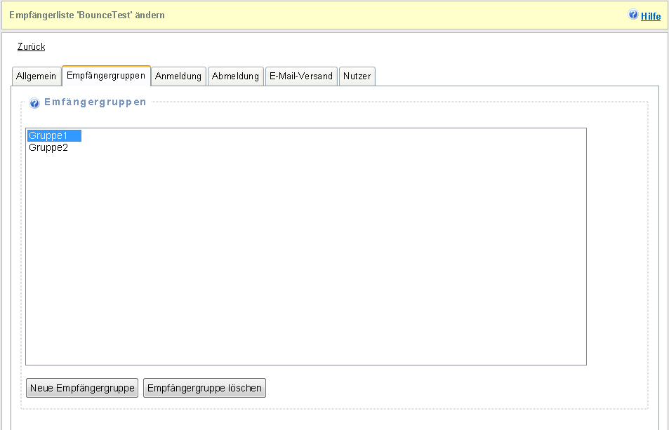 | Empfängergruppen | Sie können Empfängergruppen definieren, um die Empfänger