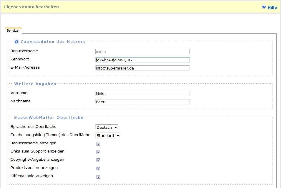 | Benutzername | Der Benutzername kann nicht verändert werden.